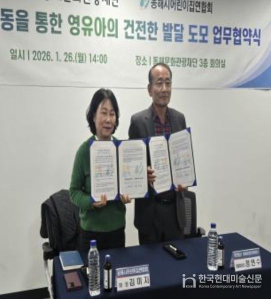 한국현대미술신문 원진 기자 | 동해문화관광재단과 동해시어린이집연합회(회장 김미자)는 문화활동을 통한 영유아의 건전한 발달을 도모하기 위해 기존 업무협약을 1월 26일에 연장 체결했다고 밝혔다.