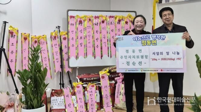 이번에 기부된 쌀은 정순선 신임 주민자치위원장이 취임을 축하받으며 화환 대신 받은 백미로, 축하의 마음을 개인에 머무르지 않고 지역사회와 함께 나누고자 하는 뜻에서 기탁하게 됐다.