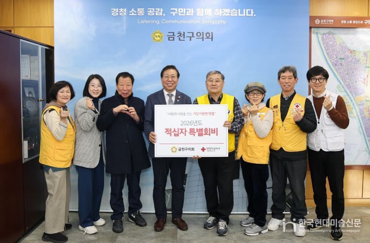 한국현대미술신문 배윤섭 기자 | 서울특별시 금천구의회는 1월 28일 오전 10시 의회에서 대한적십자봉사회 금천구협의회 관계자들을 초청해 “2026년 적십자 특별회비 전달식”을 갖고 나눔 실천에 동참했다.