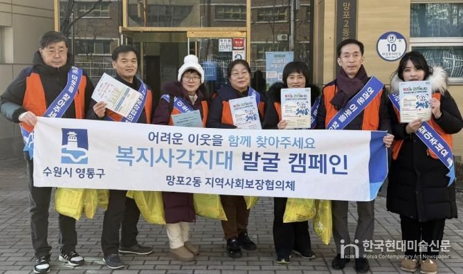 한국현대미술신문 배윤섭 기자 | 영통구 망포2동은 동절기 복지사각지대를 해소하고 이웃 간 돌봄 문화를 확산하기 위해 지난 28일, 망포2동 지역사회보장협의체가 위기가구 발굴 캠페인을 실시했다고 밝혔다.