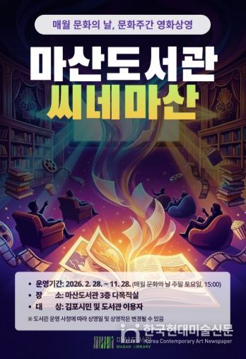 한국현대미술신문 배윤섭 기자 | 김포시 마산도서관은 매월 문화의 날을 맞아 시민들이 일상 속으로 자연스럽게 문화를 향유 할 수 있도록 문화 주간 영화 상영 프로그램 ‘씨네마산’을 운영한다.