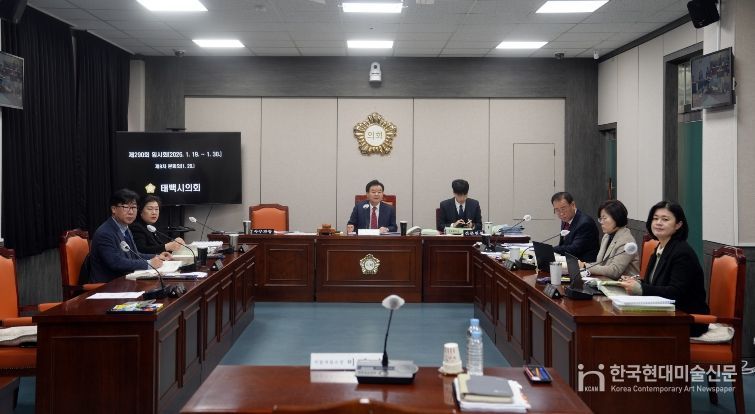 한국현대미술신문 원진 기자 | 태백시의회는 29일 위원회실에서 제290회 임시회 제8차 본회의를 열고 시설사업소, 회계과, 민원과, 기획감사과, 동행정복지센터, 총무과, 예산정책과 등 7개 부서에 대한 2026년 주요업무 계획에 대한 보고를 받았습니다.