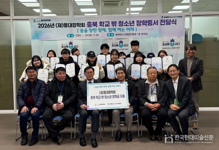 한국현대미술신문 신정은 기자 | 충청북도청소년종합진흥원(원장 김자중)은 오늘 1월 29일 (재)등대장학회(이사장 장동익)와 함께 충북 학교 밖 청소년을 대상으로 하는 장학증서 수여식을 개최했다.