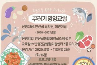 토요 쿠킹 클래스는 오는 3월부터 12월까지 총 10회에 걸쳐 운영된다. 3~4월 참가자는 2월 5일부터 안산시통합예약시스템을 통해 선착순으로 모집한다.