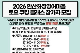 민진영 안산화정영어마을 원장은 “토요 쿠킹 클래스는 높은 만족도와 수요를 기록해 온 영어마을의 대표 프로그램 중 하나”라며 “관심 있는 학생들의 많은 참여를 바란다”고 당부했다.