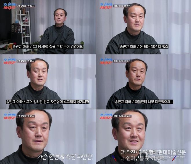 한국현대미술신문 배건 기자 | TV CHOSUN 극사실주의 다큐 예능 ‘조선의 사랑꾼’에서 '국대 출신' 축구선수 송민규의 아버지가 아들의 결혼식에 앞서 가난했던 과거를 회상한다.
