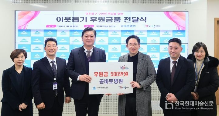 한국현대미술신문 박재남 기자 | 인천 미추홀구는 30일 곧바로병원(병원장 신승준)으로부터 후원금 500만 원을 전달받았다.