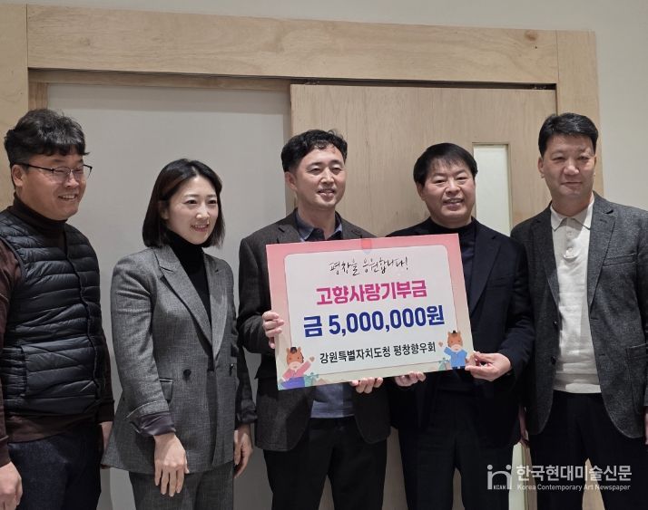 한국현대미술신문 원진 기자 | 강원특별자치도청 평창향우회(회장 이대균)은 지난 2일, 고향 평창을 응원하는 마음을 담아 고향사랑기부금 5백만 원을 기탁했다.