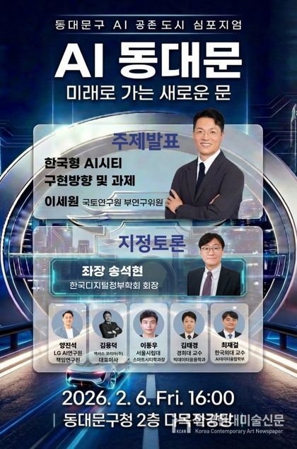 한국현대미술신문 배건 기자 | 서울 동대문구는 오는 6일 구청 2층 다목적강당에서 ‘AI 공존도시 선포식’을 열고, 인공지능을 행정과 도시 전반에 접목해 주민 생활의 불편을 줄이고 안전망을 촘촘히 하는 ‘생활밀착형 AI’ 전략을 공식화한다고 밝혔다. 선포식은 오후 2시 30분부터 4시까지 진행되며, 이어 오후 4시부터 5시까지는 ‘동대문구 AI 공존도시 심포지엄’이 열린다.