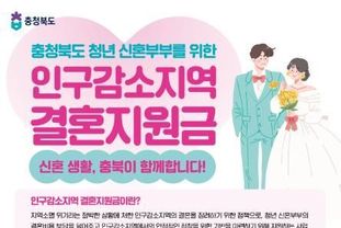 신청 기간은 오는 12월 11일까지며 요건을 갖춘 신혼부부는 ‘충청북도 가치자람’ 홈페이지를 통해 온라인으로 신청하거나 주소지 관할 읍·면 사무소를 방문해 신청하면 된다.