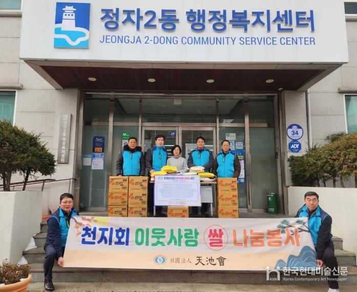 한국현대미술신문 배윤섭 기자 | 사단법인 천지회가 지난 4일, 수원시 장안구 정자2동을 비롯하여 파장동, 정자2동, 정자3동, 동광원에 설 맞이 쌀 나눔 봉사를 진행했다.