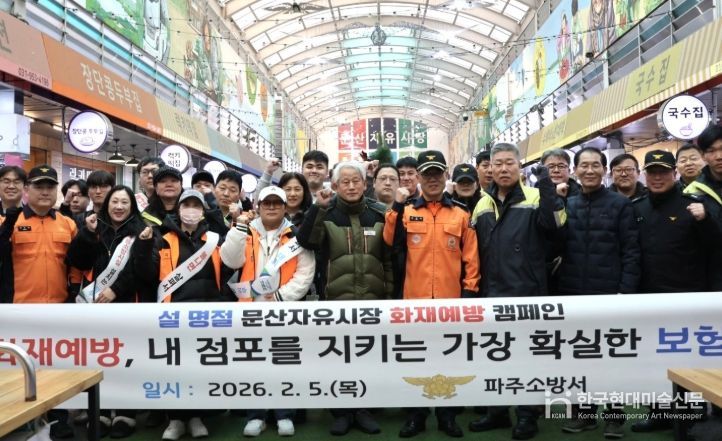 한국현대미술신문 배윤섭 기자 | 파주소방서는 2월 5일 설 명절을 앞두고 파주시 문산자유시장에서 화재예방 캠페인과 상인 간담회, 합동점검을 실시하며 지역 전통시장 화재예방에 총력을 기울였다.