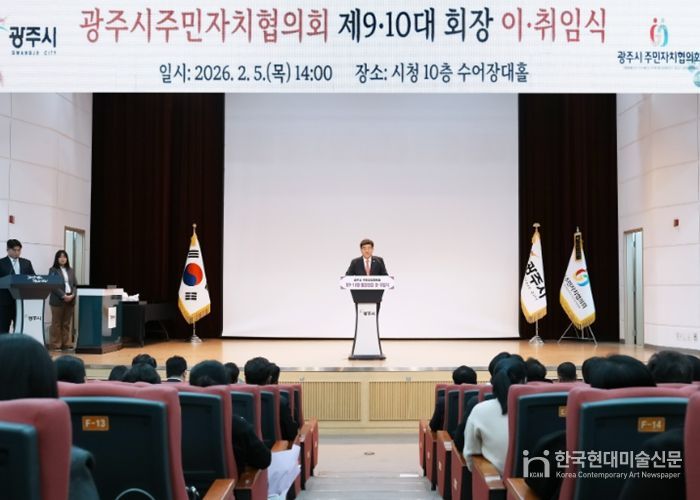 한국현대미술신문 배윤섭 기자 | 광주시는 5일 시청 수어장대홀에서 ‘제9·10대 광주시 주민자치협의회장 이·취임식’을 개최했다.