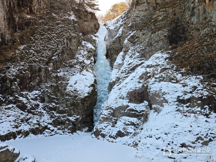 한국현대미술신문 신정은 기자 | 2월의 한겨울, 충북 영동군 심천면에 위치한 옥계폭포가 빙벽과 어우러진 웅장한 겨울 풍경으로 방문객들의 시선을 사로잡고 있다.