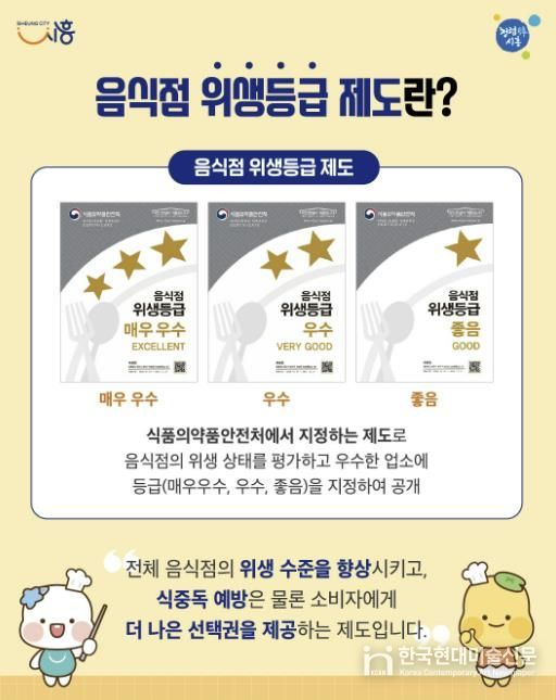 한국현대미술신문 배윤섭 기자 | 시흥시는 음식점 위생등급 재지정 평가에 대한 영업자의 부담을 줄이고 위생등급 재지정률을 높이고자 이달부터 ‘음식점 위생등급 지정업소 청소비 지원사업’을 추진한다.