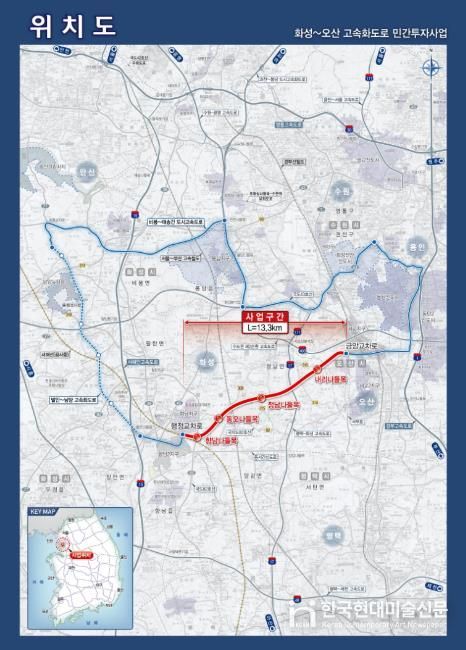 한국현대미술신문 배윤섭 기자 | 화성특례시는 총사업비 약 6,800억원 규모의 화성~오산 고속화도로 민간투자사업 우선협상대상자로 ‘HL디앤아이한라 컨소시엄’을 선정하고, 사업이 본격 추진 단계에 들어섰다고 밝혔다.