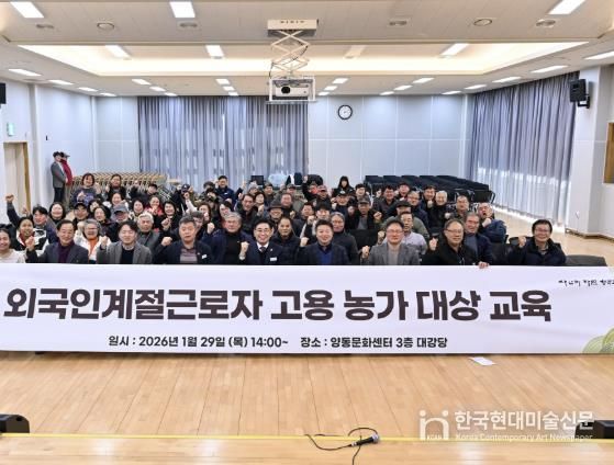 한국현대미술신문 배윤섭 기자 | 양평군은 지난 1월 29일 오후 2시부터 5시까지 양동면 문화센터 3층 다목적회관에서 ‘2026년도 외국인 계절근로자 고용농가 대상 교육’을 실시했다.