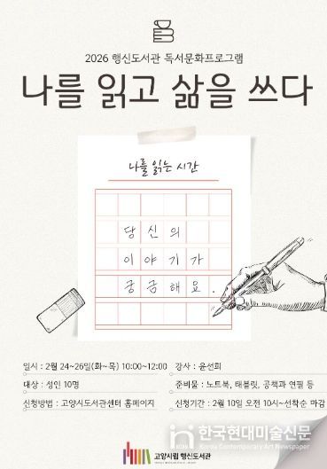 한국현대미술신문 배윤섭 기자 | 고양특례시 행신도서관은 일반 성인을 대상으로 하는 글쓰기 프로그램 ‘나를 읽고 삶을 쓰다’를 운영한다.