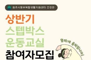 한국현대미술신문 원진 기자 | 원주시 동부복합생활지원센터는 오는 19일부터 25일까지 상반기 ‘스텝박스 운동 교실’ 참여자를 모집한다.
