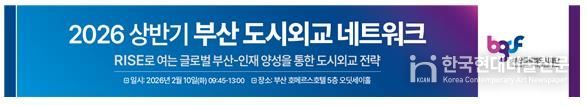 한국현대미술신문 정소영 기자 | 부산글로벌도시재단은 지역 혁신과 글로벌 협력을 연계한 도시외교 협력 플랫폼 구축을 위해 2월 10일, 호메르스호텔에서 '2026 상반기 부산 도시외교 네트워크'를 개최한다고 밝혔다.