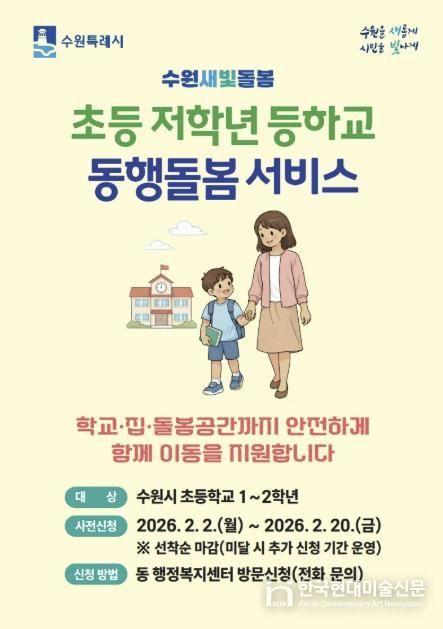 한국현대미술신문 배윤섭 기자 | 수원특례시가 ‘초등 저학년 등하교 동행돌봄서비스’ 사전 신청 기간을 운영한다.