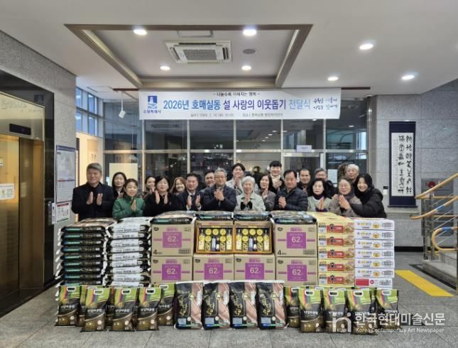 한국현대미술신문 배윤섭 기자 | 수원시 권선구 호매실동에서 2026년 설 명절을 맞이하여 이웃 돕기 전달식을 진행했다.