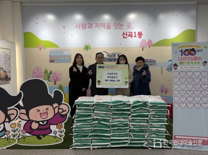 한국현대미술신문 배윤섭 기자 | 의정부시 신곡1동주민센터는 2월 9일 의정부신곡새마을금고가 어려운 이웃을 위해 백미(10kg 단위) 50포를 기부했다고 밝혔다.