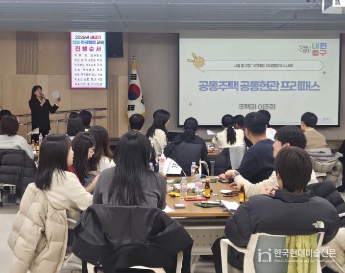 한국현대미술신문 배건 기자 | 서울 중구는 지난 10일(화) 오후 중구청 중구홀에서 공직 사회에 첫발을 내디딘 신규 공무원 78명을 대상으로 ‘2026 청렴·적극행정 교육’을 진행했다. 이날 기초 청렴 강연, 적극 행정 사례 소개, 청렴 퀴즈 경연, 다짐 엽서 쓰기, 이순신 생가터 방문 등 다채로운 프로그램이 펼쳐져 참가자들의 이목을 시종일관 집중시켰다.