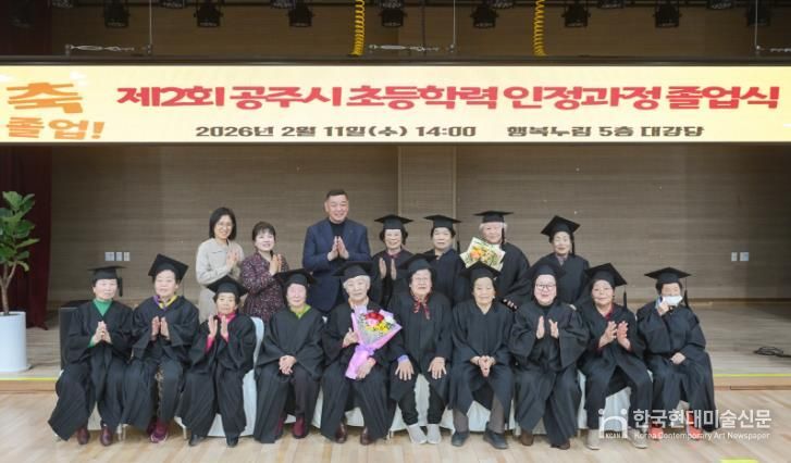 한국현대미술신문 신정은 기자 | 공주시는 지난 11일 행복누림 대강당에서 ‘제2회 공주시 성인문해교육 학력인정 초등과정 졸업식’을 열었다고 밝혔다.