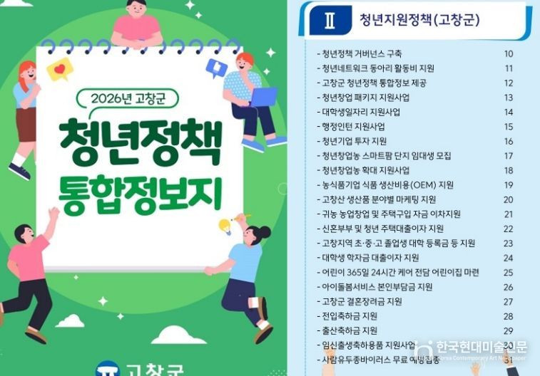 한국현대미술신문 기자 | 전북 고창군이 청년정책을 한눈에 확인할 수 있는 ‘2026년 고창군 청년정책 통합정보지’를 발간했다.