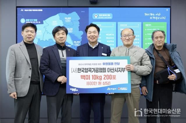한국현대미술신문 신정은 기자 | 한국양곡가공협회 아산시지부는 지난 12일 아산시청을 방문해 취약계층 지원을 위한 600만 원 상당의 쌀 10kg 200포를 전달했다.