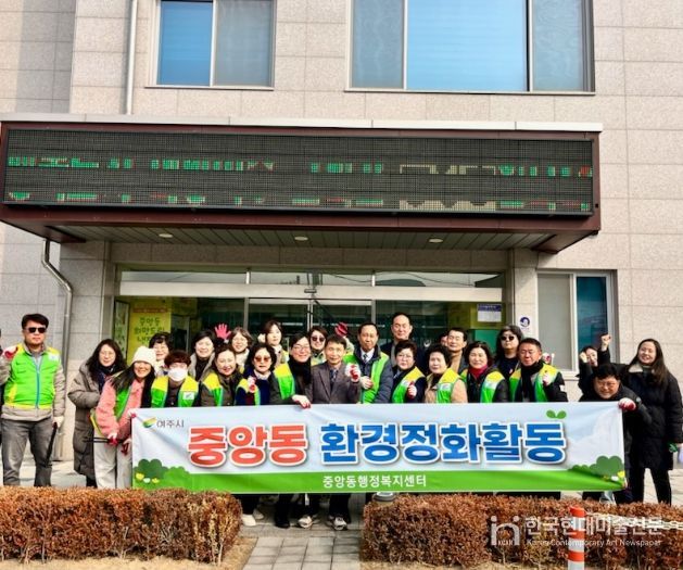 한국현대미술신문 배윤섭 기자 | 여주시 중앙동 행정복지센터는 설 명절을 맞아 2월 13일 직원들과 주민자치위원이 참여한 가운데 쾌적한 마을 환경 조성을 위한 환경정화활동을 실시했다. 이번 활동은 명절 기간 고향을 방문하는 귀성객과 주민들에게 깨끗하고 정돈된 중앙동 이미지를 제공하고, 생활 주변 환경 개선을 통해 따뜻한 명절 분위기를 조성하고자 마련됐다.