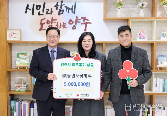 한국현대미술신문 배윤섭 기자 | 양주시는 지난 12일 ㈜동원도장방수로부터 이웃돕기 성금 500만 원을 기탁받았다고 밝혔다.