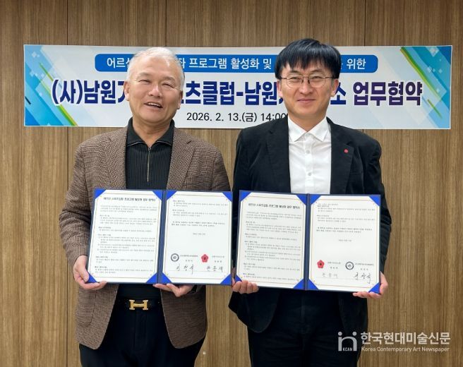 한국현대미술신문 기자 | 남원시보건소는 2월 13일 (사)남원거점스포츠클럽과 함께 지역 어르신들의 스포츠 참여 기회를 확대하고 통합적인 건강관리 서비스를 제공하기 위한 업무협약(MOU)를 체결했다.