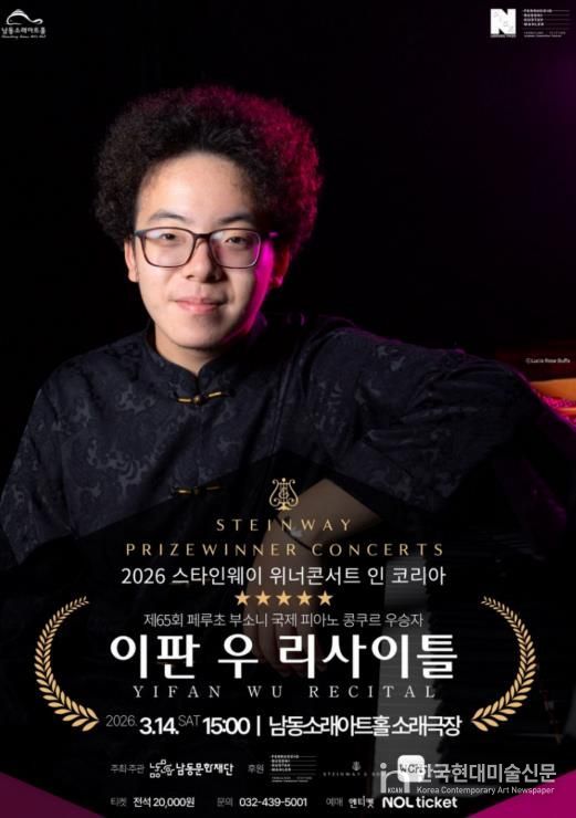 한국현대미술신문 박재남 기자 | 인천시 남동구 남동문화재단은 제65회 페루초 부소니 국제 피아노 콩쿠르 우승자인 이판 우(YIFAN WU)의 피아노 리사이틀 공연을 남동소래아트홀에서 3월 14일 15시에 개최한다고 19일 전했다.