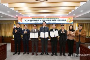 한국현대미술신문 원진 기자 | 원주시는 ‘2026 원주라면축제’의 성공적인 개최를 위해 19일 오후 2시, 시청 7층 투자상담실에서 삼양식품, 강원특별자치도경제진흥원과 업무협약을 체결했다.