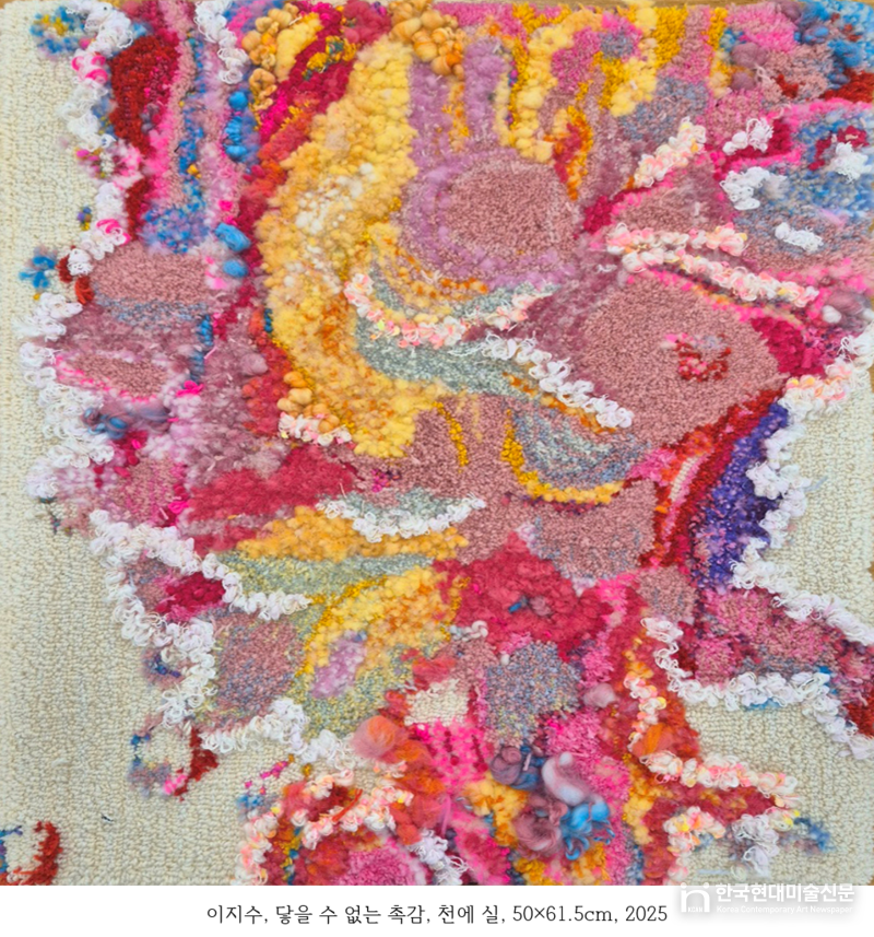 또한 “이지수의 섬유 작업은 부드러운 재료를 통해 오히려 단단한 감정의 층위를 구축한다”며 “실과 천이라는 친숙한 재료가 개인의 기억을 넘어 보편적 정서로 확장되는 지점에서 이 전시는 ‘감성의 구조’를 드러낸다”고 설명했다.