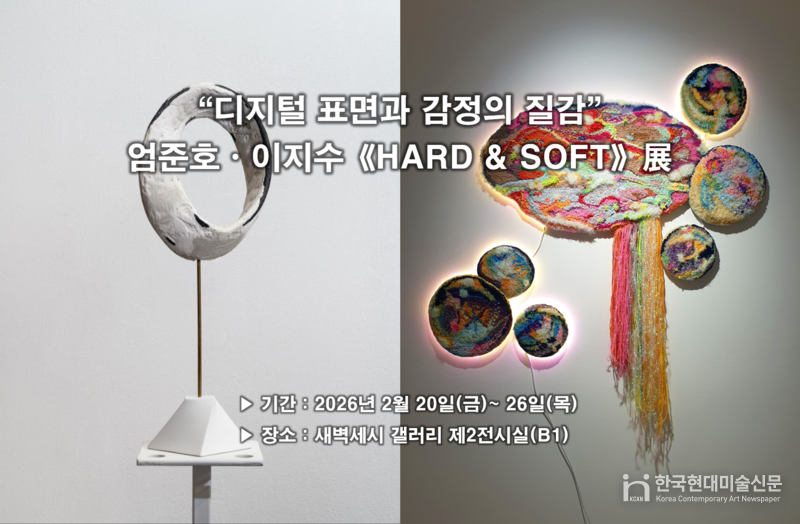 2월 20일부터 26일까지 인천 연수구 새벽세시갤러리 제2전시실(B1)에서 조각과 섬유 작업을 통해 ‘표면’의 의미를 확장해 온 임준호·이지수 2인전 《HARD & SOFT》이 열린다.