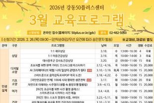 한국현대미술신문 배건 기자 | 서울 강동구는 오는 2월 26일부터 강동50플러스센터 3월 교육 프로그램 수강생을 모집한다고 밝혔다.