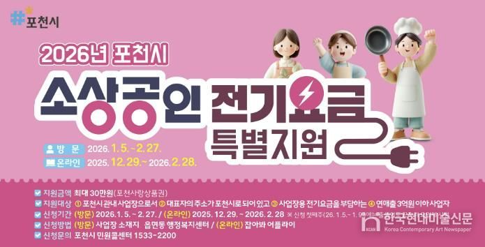 한국현대미술신문 배윤섭 기자 | 포천시가 관내 소상공인의 고정비 부담 완화와 경영 안정을 위해 추진 중인 ‘소상공인 전기요금 특별지원 사업’이 신청자 5,000명을 넘어서는 등 소상공인의 높은 관심 속에 순조롭게 추진되고 있다.