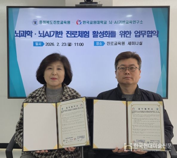 한국현대미술신문 신정은 기자 | 충청북도교육청 직속기관 진로교육원은 23일, 진로교육원에서 한국교원대학교 뇌·AI기반교육연구소와 뇌과학·뇌AI 기반 맞춤형 진로설계 역량 함양을 위한 업무협약을 체결했다고 밝혔다.
