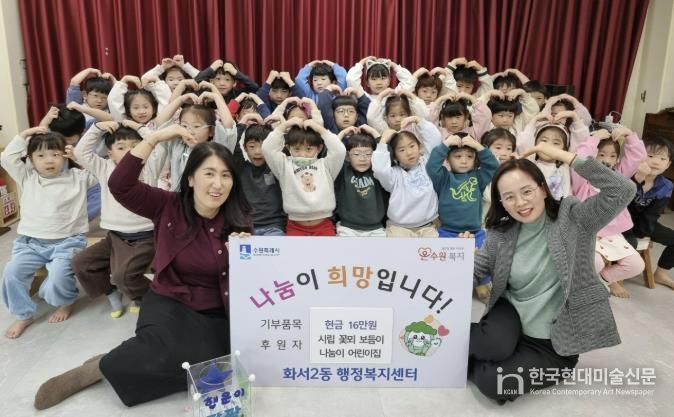 한국현대미술신문 배윤섭 기자 | 수원시 팔달구 화서2동 소재 시립꽃뫼보듬이나눔이어린이집은 지난 23일, 원아와 학부모, 교직원이 함께 마련한 바자회 수익금 16만 원을 지역 내 어려운 이웃을 위해 사용해 달라며 화서2동 행정복지센터에 기탁했다.