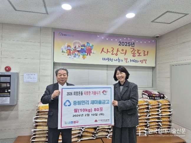 한국현대미술신문 배건 기자 | 서울 중구 중림동은 중림·만리새마을금고가 관내 거주하는 어려운 이웃을 위해 백미 80포와 성금 100만원을 기탁하고, 지역 청소년들을 위해 장학금 350만원을 전달하며 따뜻한 나눔을 실천했다고 밝혔다.