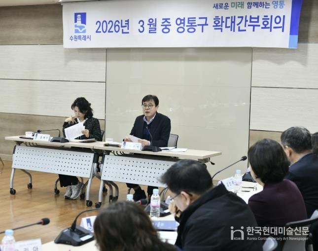 한국현대미술신문 배윤섭 기자 | 수원특례시 영통구는 지난 24일, 구청 상황실에서 ‘2026년 3월 확대간부회의’를 개최하고, 구정 주요 현안을 집중 점검했다.