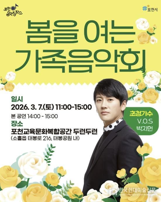 한국현대미술신문 배윤섭 기자 | 포천시는 오는 3월 7일 포천시 교육문화복합공간 두런두런에서 ‘포천음악창작소, 봄을 여는 가족음악회’를 개최한다.