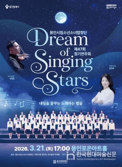 한국현대미술신문 배윤섭 기자 | 용인문화재단은 오는 3월 21일 용인포은아트홀에서 용인시립소년소녀합창단 제47회 정기연주회'Dream of Singing Stars'를 개최한다고 밝혔다.