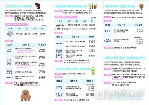 한국현대미술신문 신정은 기자 | 천안시가 올해 한부모가족 지원사업의 변경사항을 시민들이 쉽게 알 수 있도록 ‘한부모가족 복지서비스 홍보물’ 3,000부를 제작·배포한다고 27일 밝혔다.