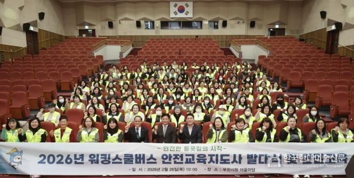 한국현대미술신문 배윤섭 기자 | 부천시는 지난 26일 시청 어울마당에서 ‘2026년 어린이통학안전사업(워킹스쿨버스) 발대식 및 안전교육’을 열고 본격적인 사업 추진에 들어갔다. 이날 행사에는 부천시장을 비롯해 안전교육지도사 117명이 참석했으며, 발대식과 직무교육을 통해 어린이 통학 안전 강화 의지를 공유했다.