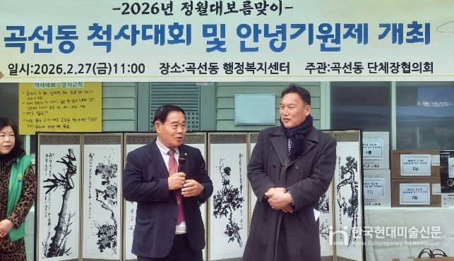 한국현대미술신문 배윤섭 기자 | 수원특례시의회는 2월 27일 곡선동 행정복지센터에서 열린 정월대보름 척사대회에 참석해 주민들과 함께 한 해의 건강과 풍요를 기원했다. 이날 행사에는 기획경제위원회 장정희 위원장(더불어민주당, 권선2·곡선), 도시미래위원회 이찬용 위원장(국민의힘, 권선2·곡선)도 함께했다.