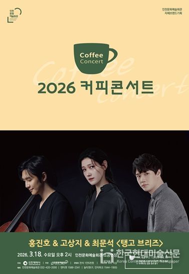 한국현대미술신문 박재남 기자 | 인천의 대표 마티네 콘서트인 인천문화예술회관의 '커피콘서트'가 오는 3월 18일 오후 2시, 2026년 첫 무대를 선보이며 여정의 시작을 알린다.